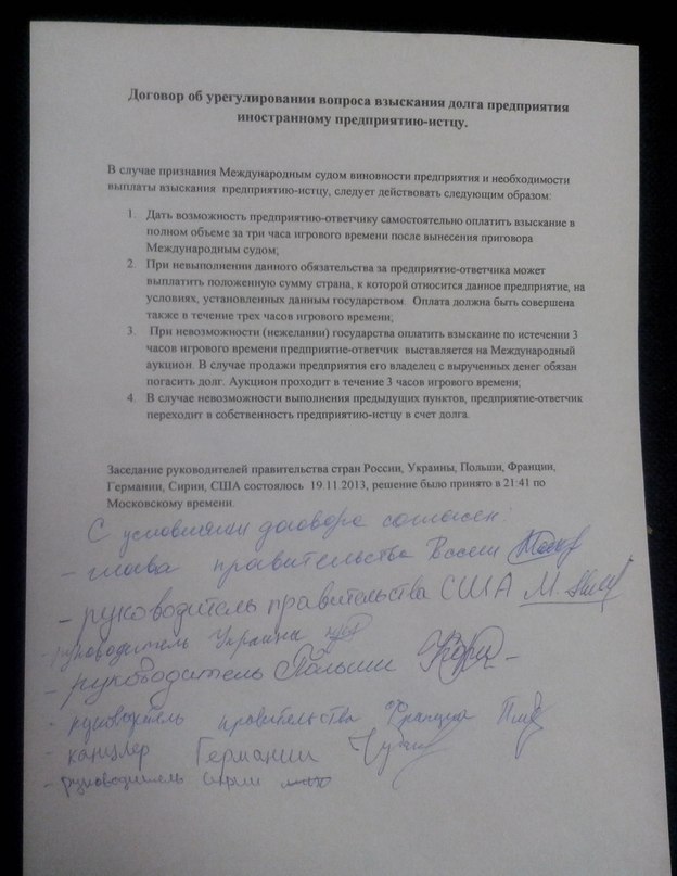Тем кому нужна помощь в любом вопросе.Из: Кабак Как призидент США я могу оказать Вам помощь: в решении международных конфликтов, помощь с инвестициями, политическое убежище или же другие волнующие Вас игровые вопросы.